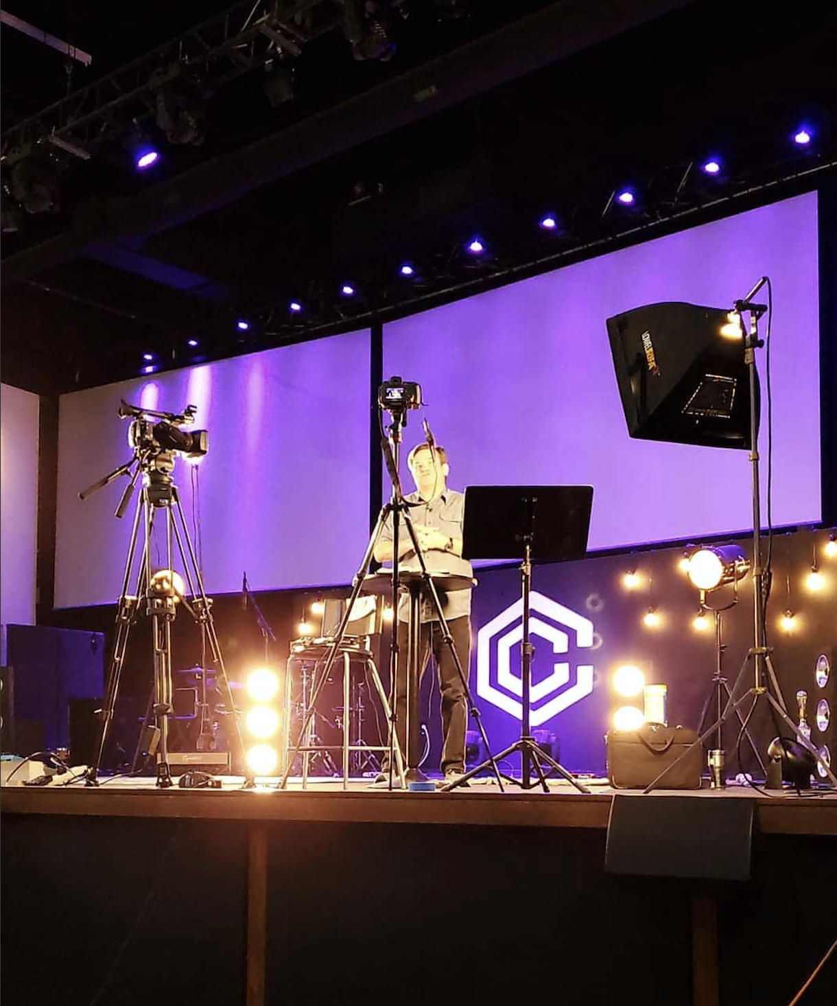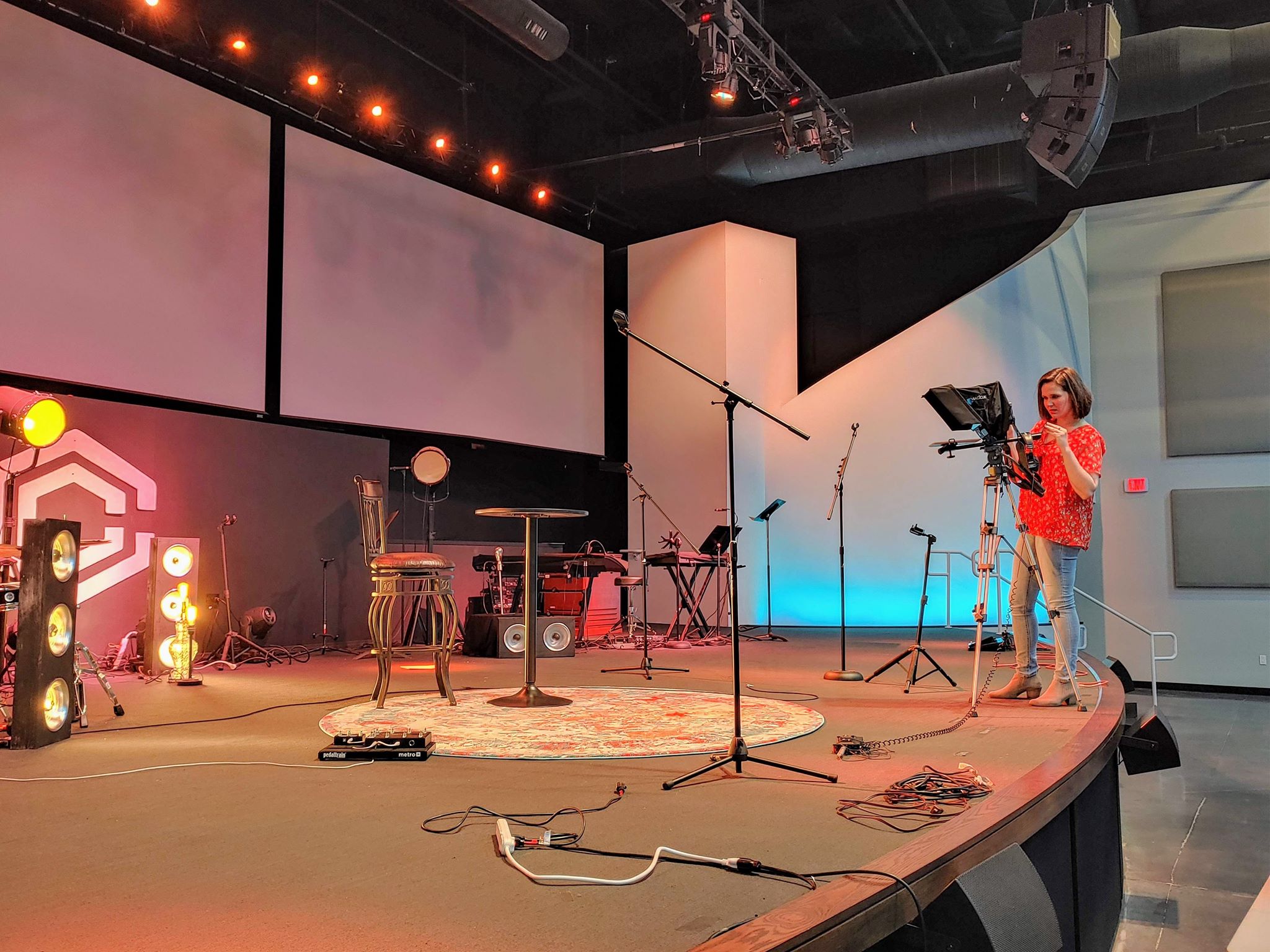 This involves working with department heads and volunteers, scheduling talent, writing scripts, setting up lighting and sets, getting a live studio audience for the message, filming, editing, and posting it not just our website, but making sure the live stream is ready to go.